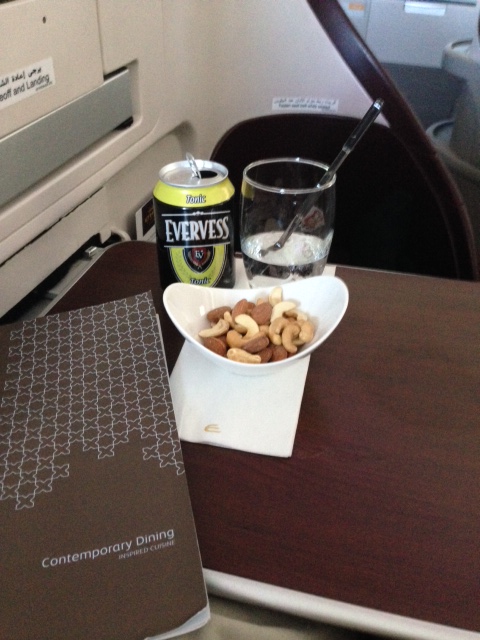 Etihad features a “kitchen anytime” concept which leaves the freedom to the guest to choose from a regular 4-course meal or plenty of snack or à la card items from a always available menu. A food and beverage manager (white jacket) will take orders and you can choose every individual course and the time that you desire to eat.