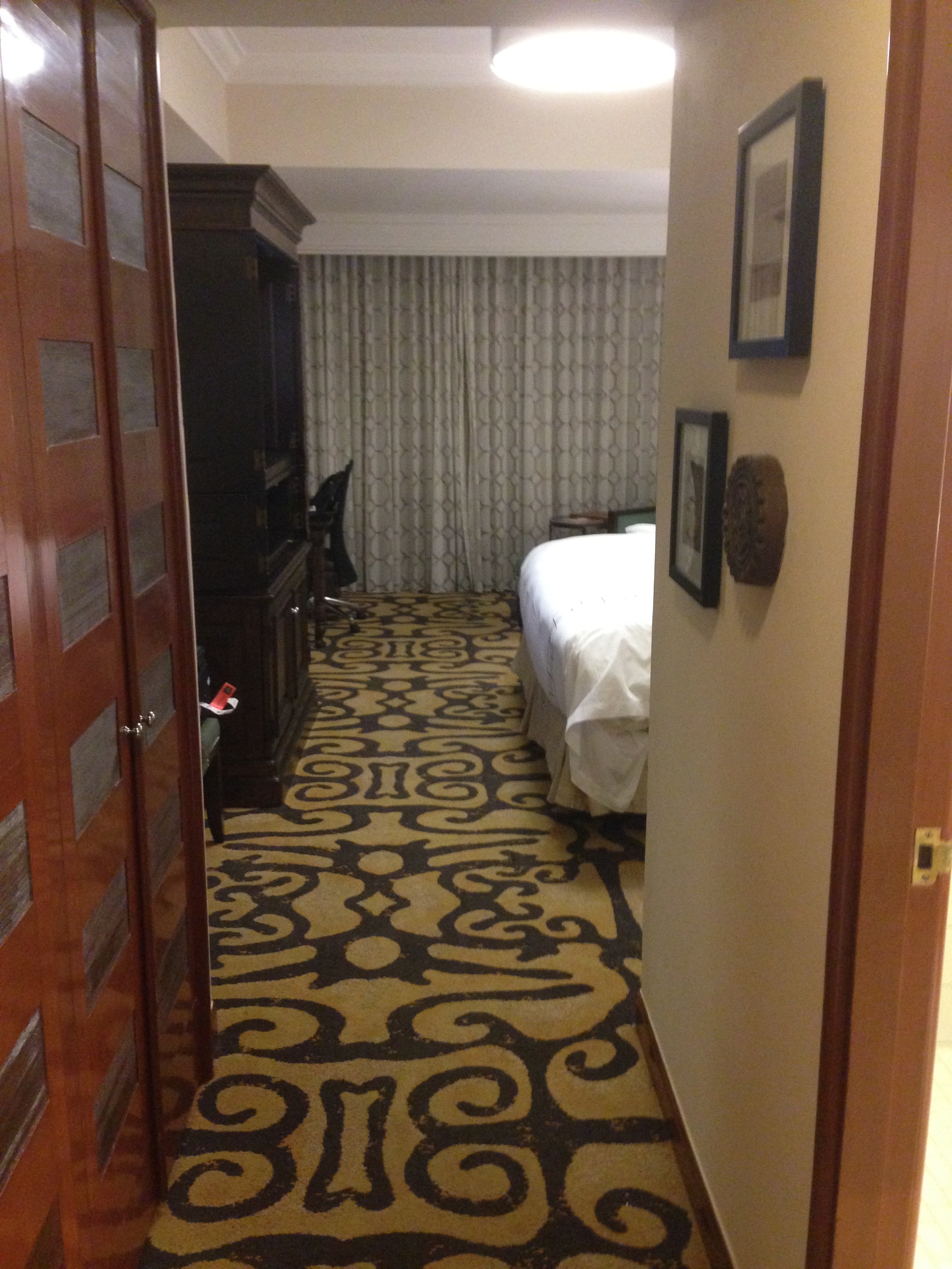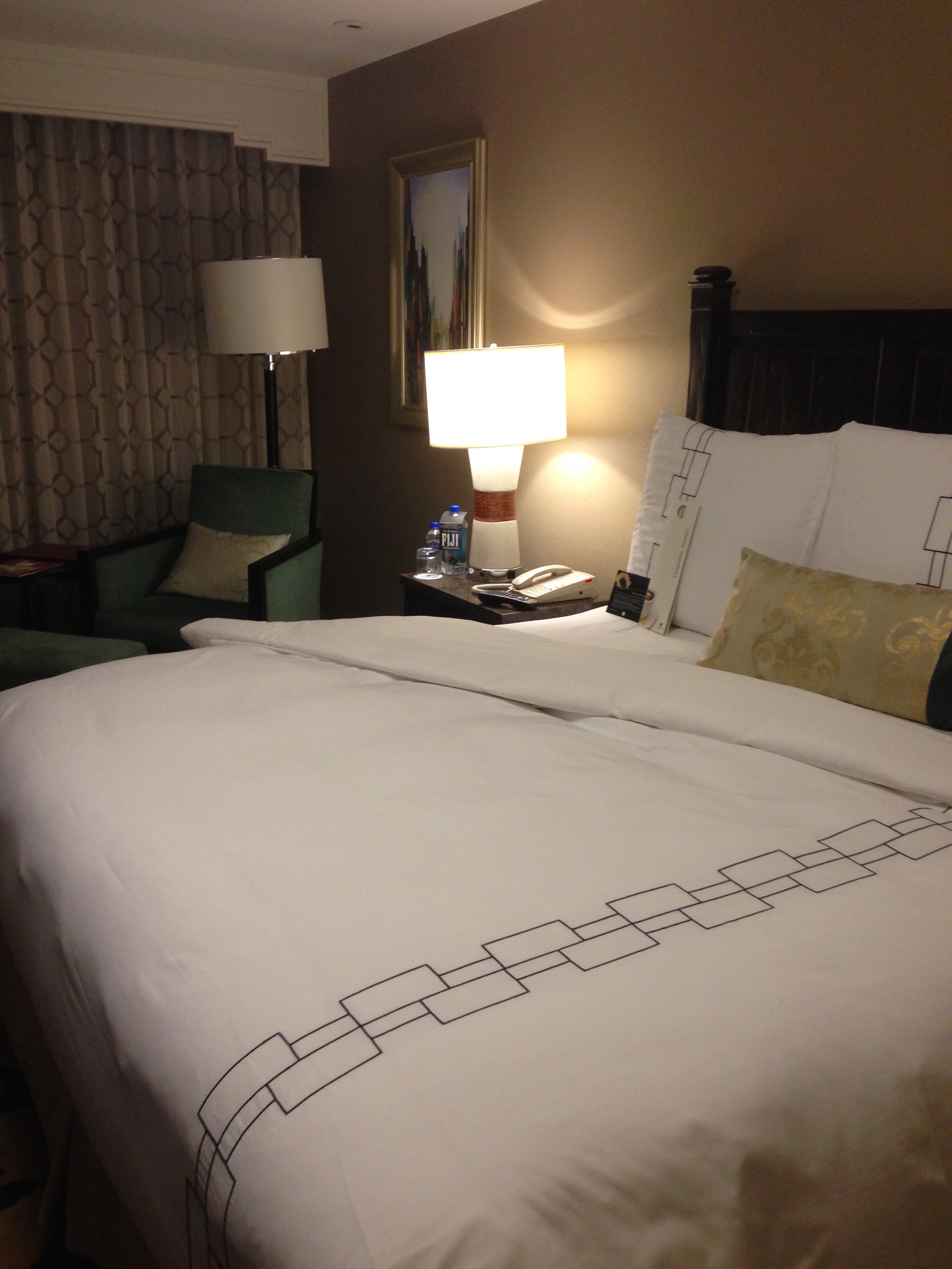 I arrived at the JW Marriott Hotel at around 9pm after a long trip from europe. I was greeted cheerfully and check-in very speedy. My room was on the top floor of the hotel with a nice view. The room was spacious, impeccably clean with a nice big bathroom and a comfortable big bed.