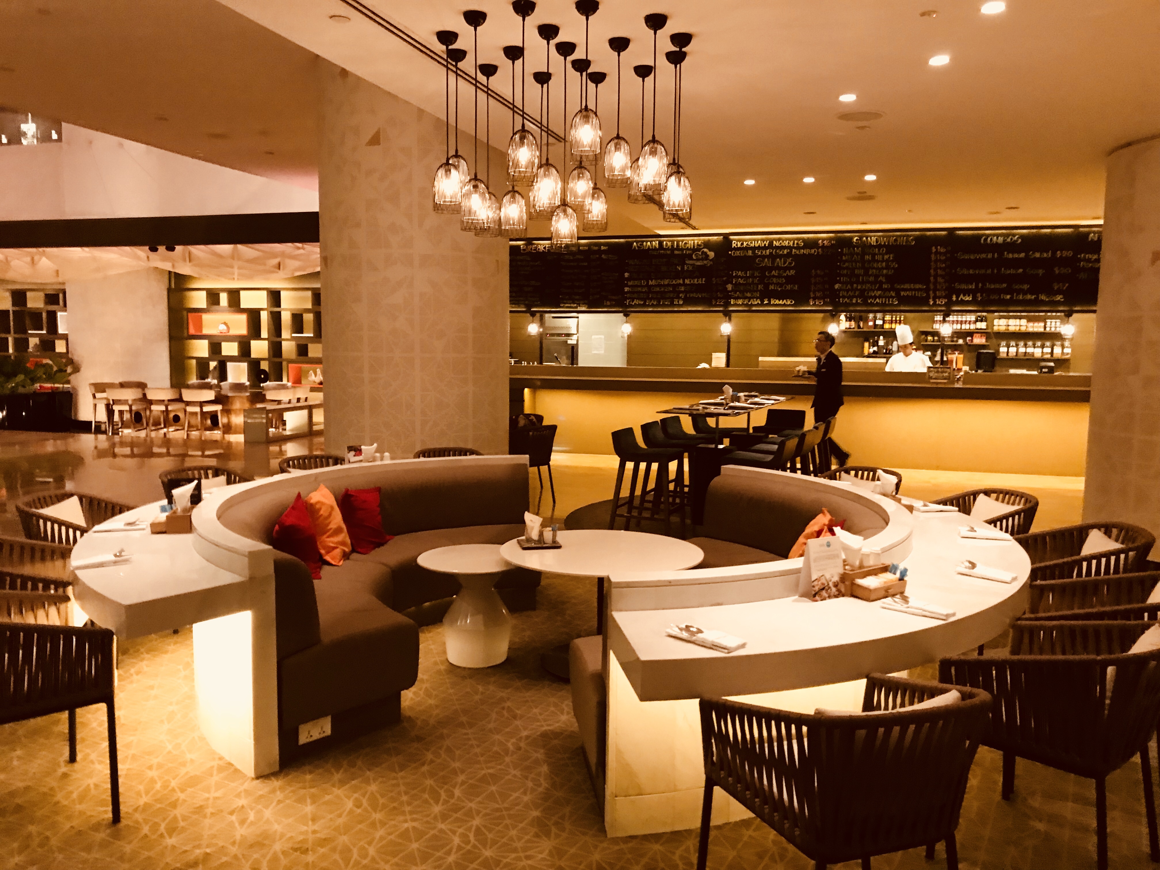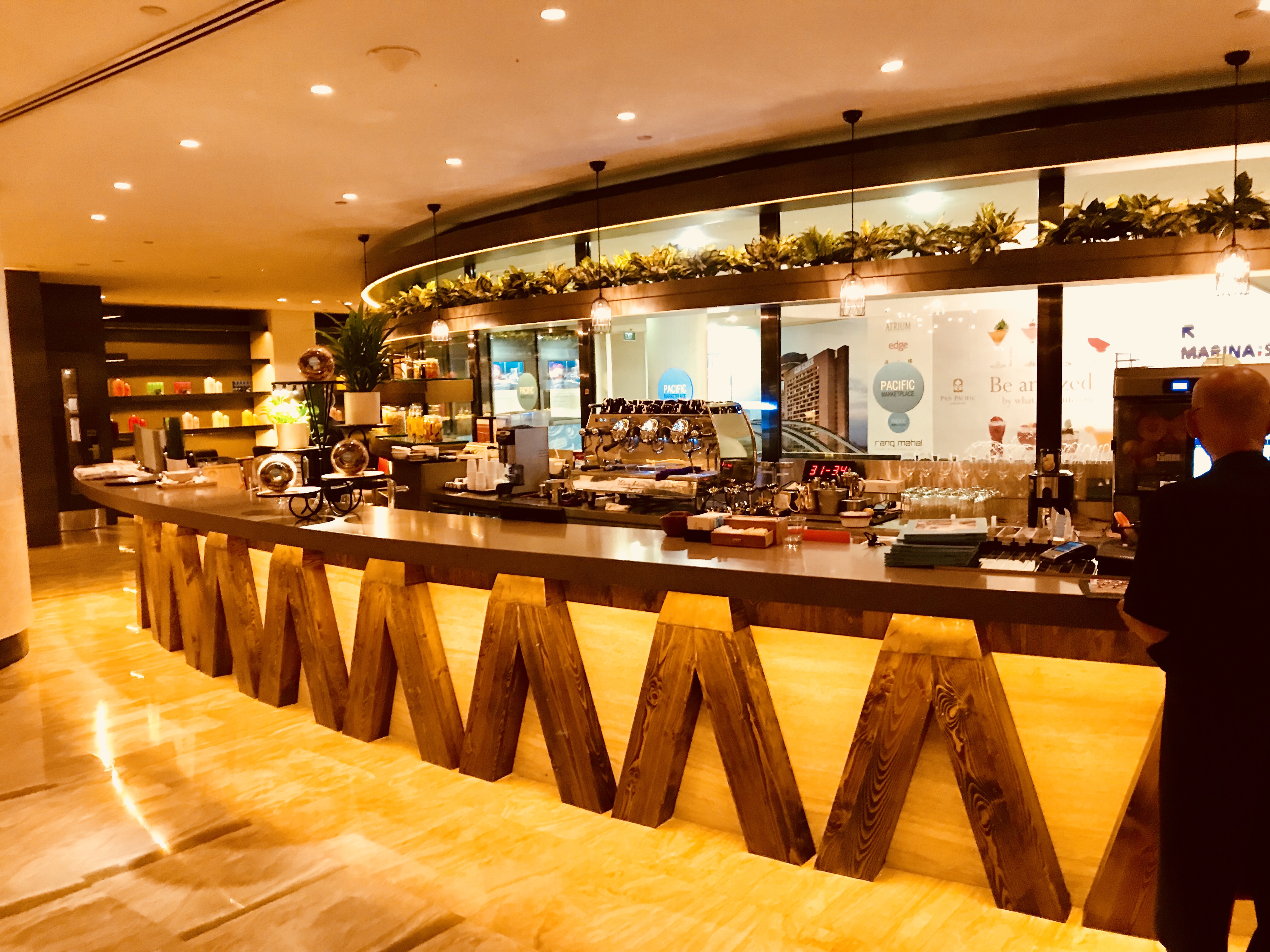 It is a large hotel with a stunning atrium featuring glass lifts. The Pan Pacific Singapore is famous for its dining outlets which are equally busy with locals and visitors alike. (The Edge, (Local, Regional and International), Rang Mahal (Indian Cuisine), Keyaki (Japanese Restaurant), Hai Tien Lo (Chinese Restaurant), Atrium (longest bar in town) and Pacific Marketplace (Sandwiches and more in the lobby).