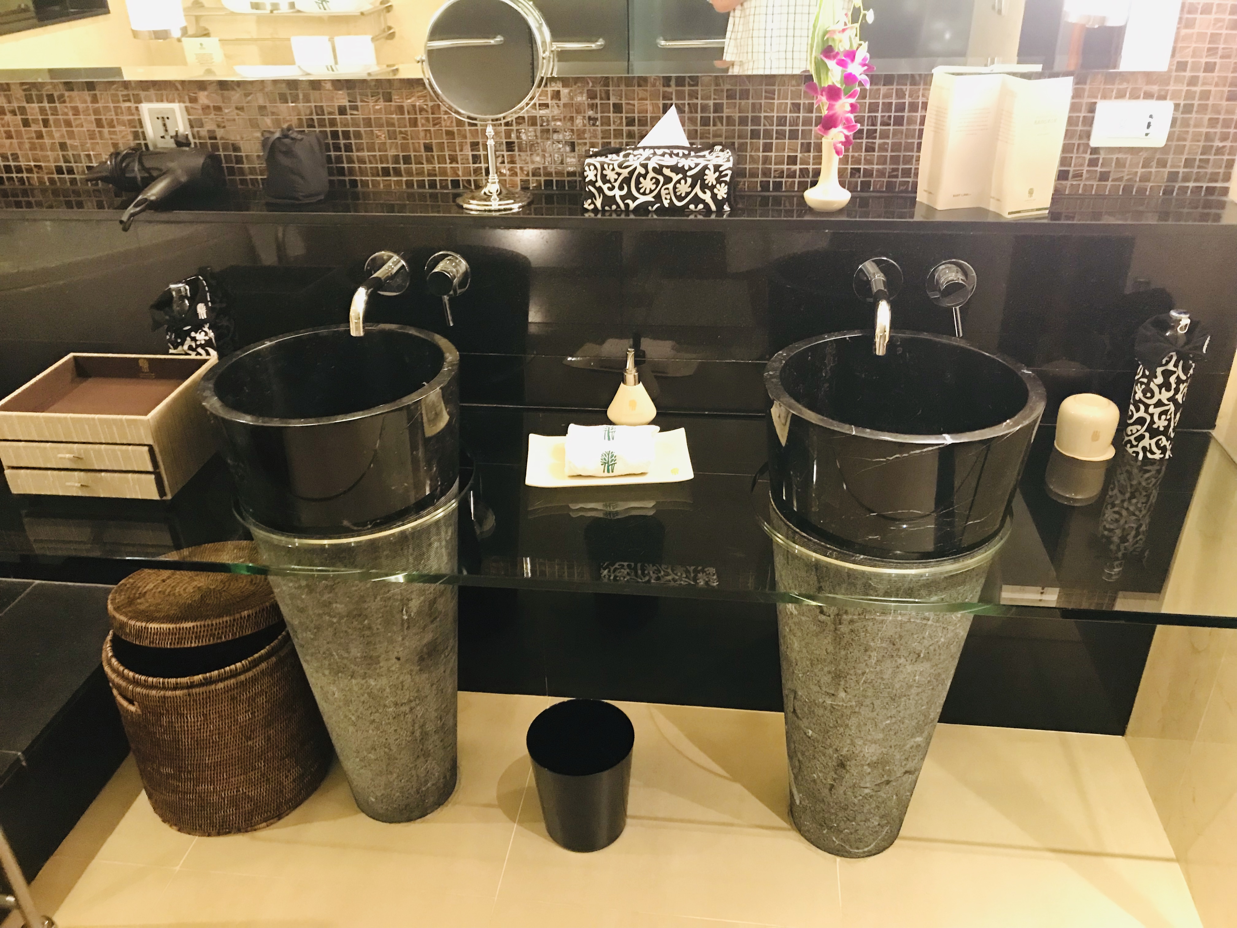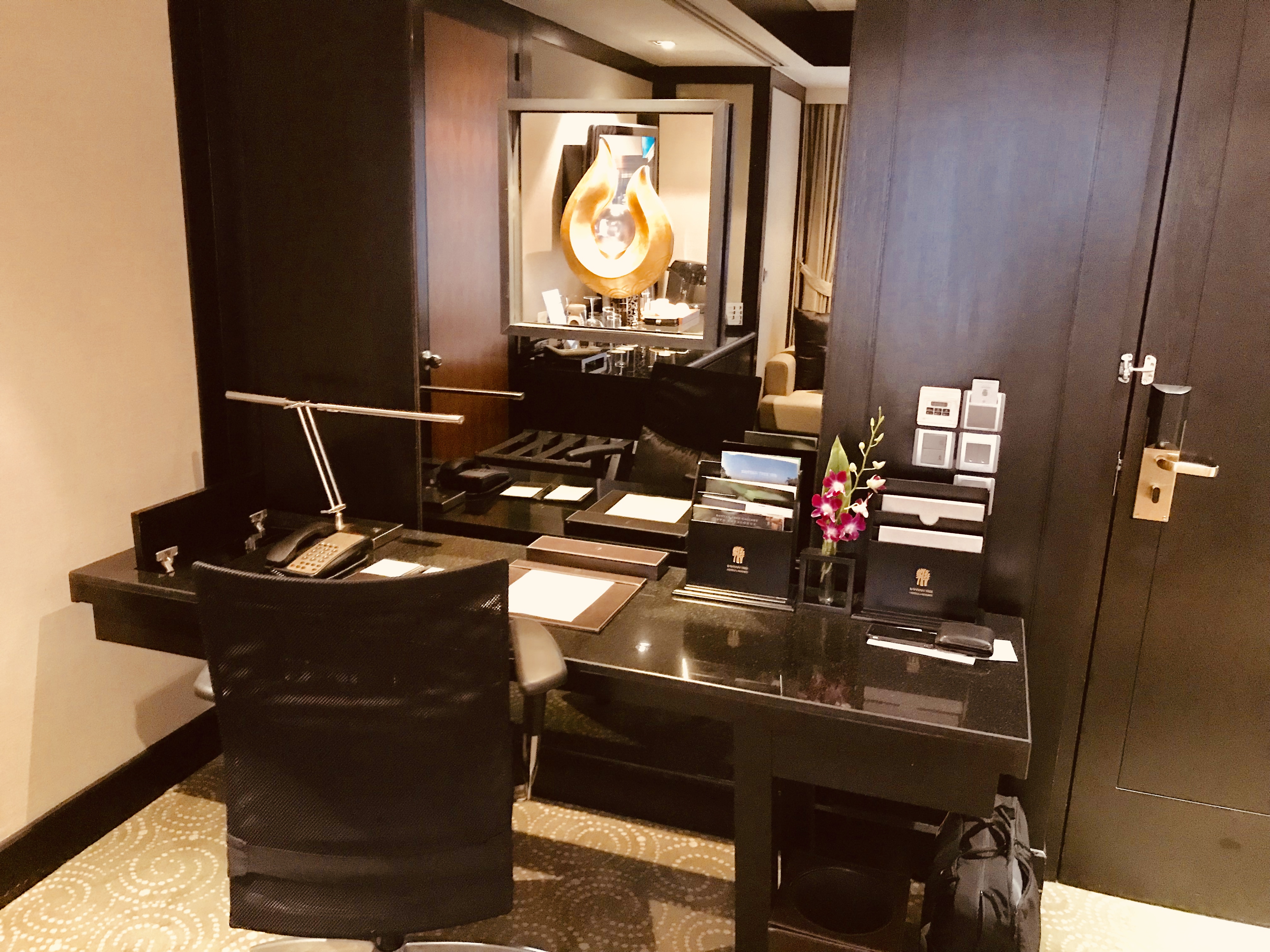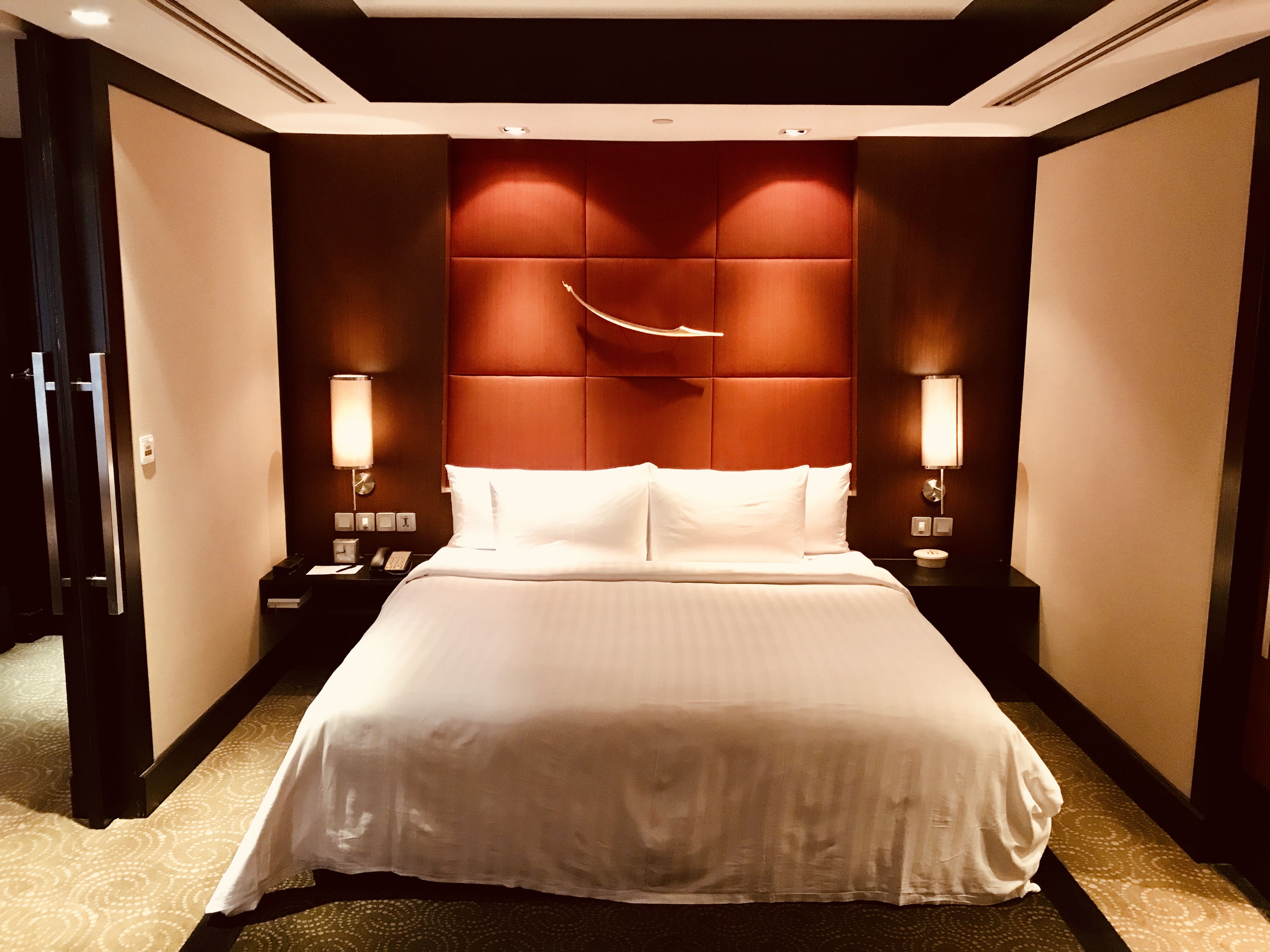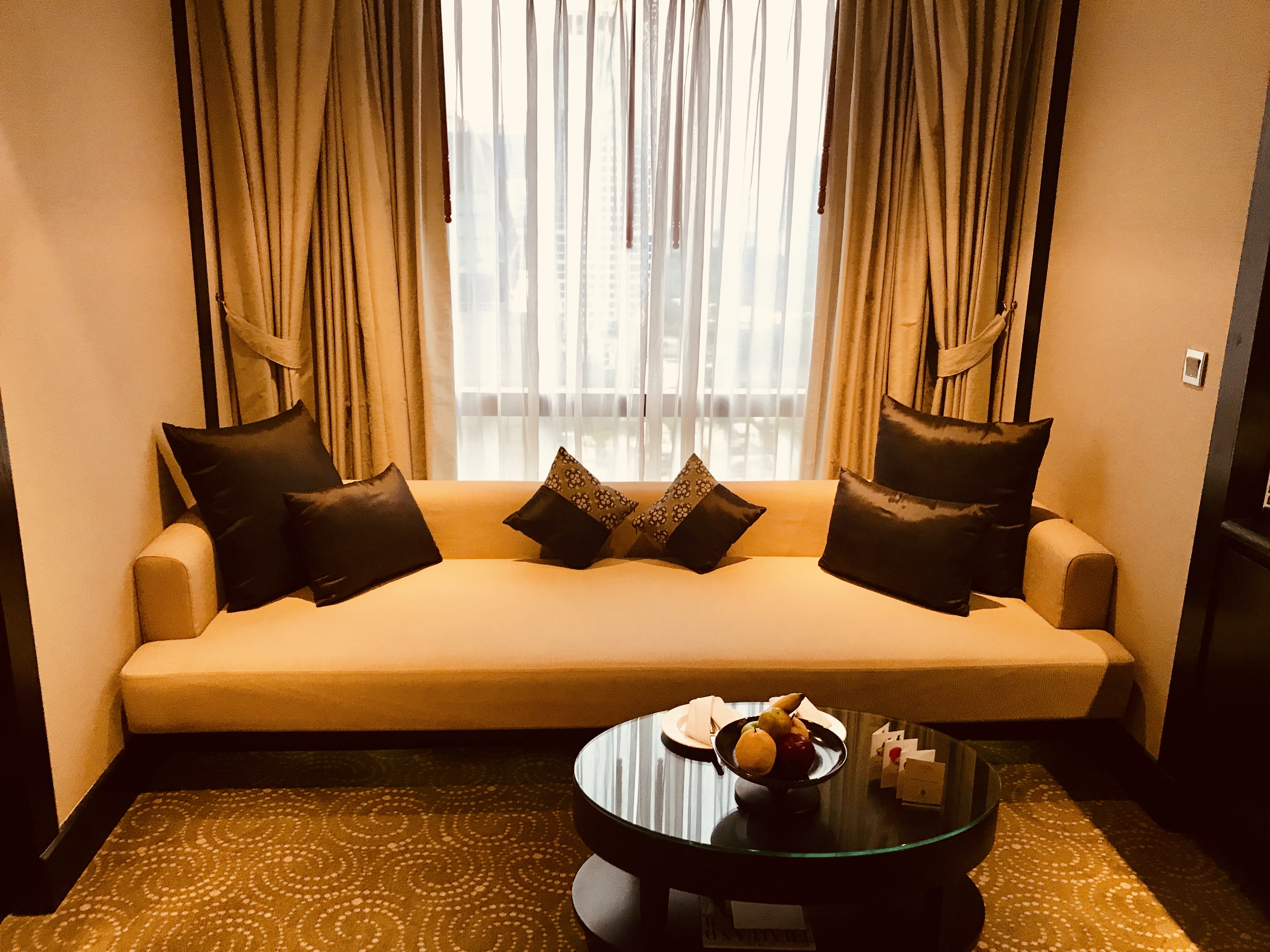 I stayed in a one-bedroom-suite which was spacious with a lounge area, a working desk, a separate bedroom and an oversized bathroom with stand-alone bathtub, shower and separate toilet. The amenities were luxurious and plentiful. The layout of the bedroom was however a bit unconventional, very dark (good for sleeping) but a small sitting area which I found a bit badly designed as I did not see the purpose of it. Next door was a nice sitting area with large windows and a great view. There was also no turn-down service which should be standard in a hotel of this level.