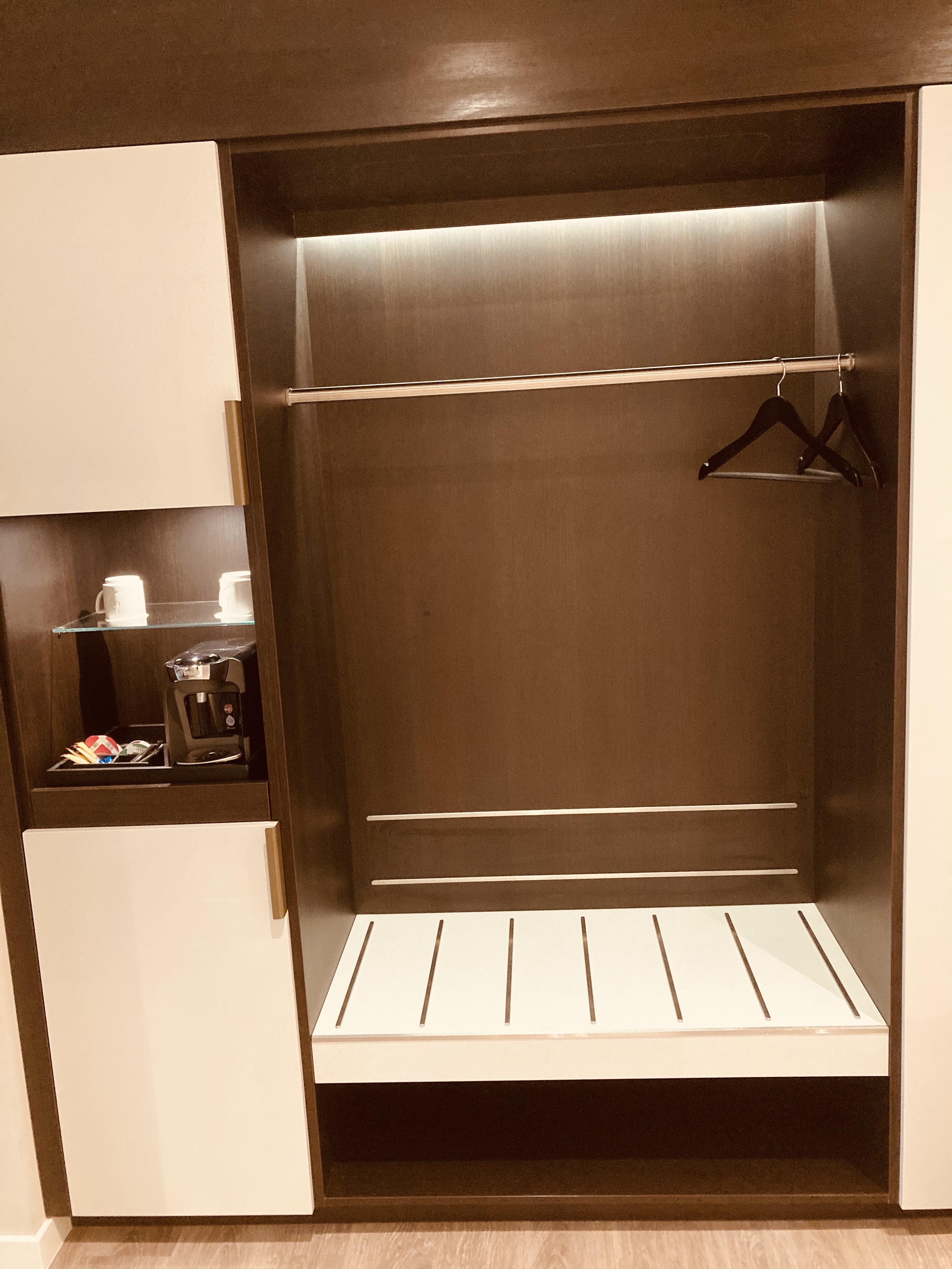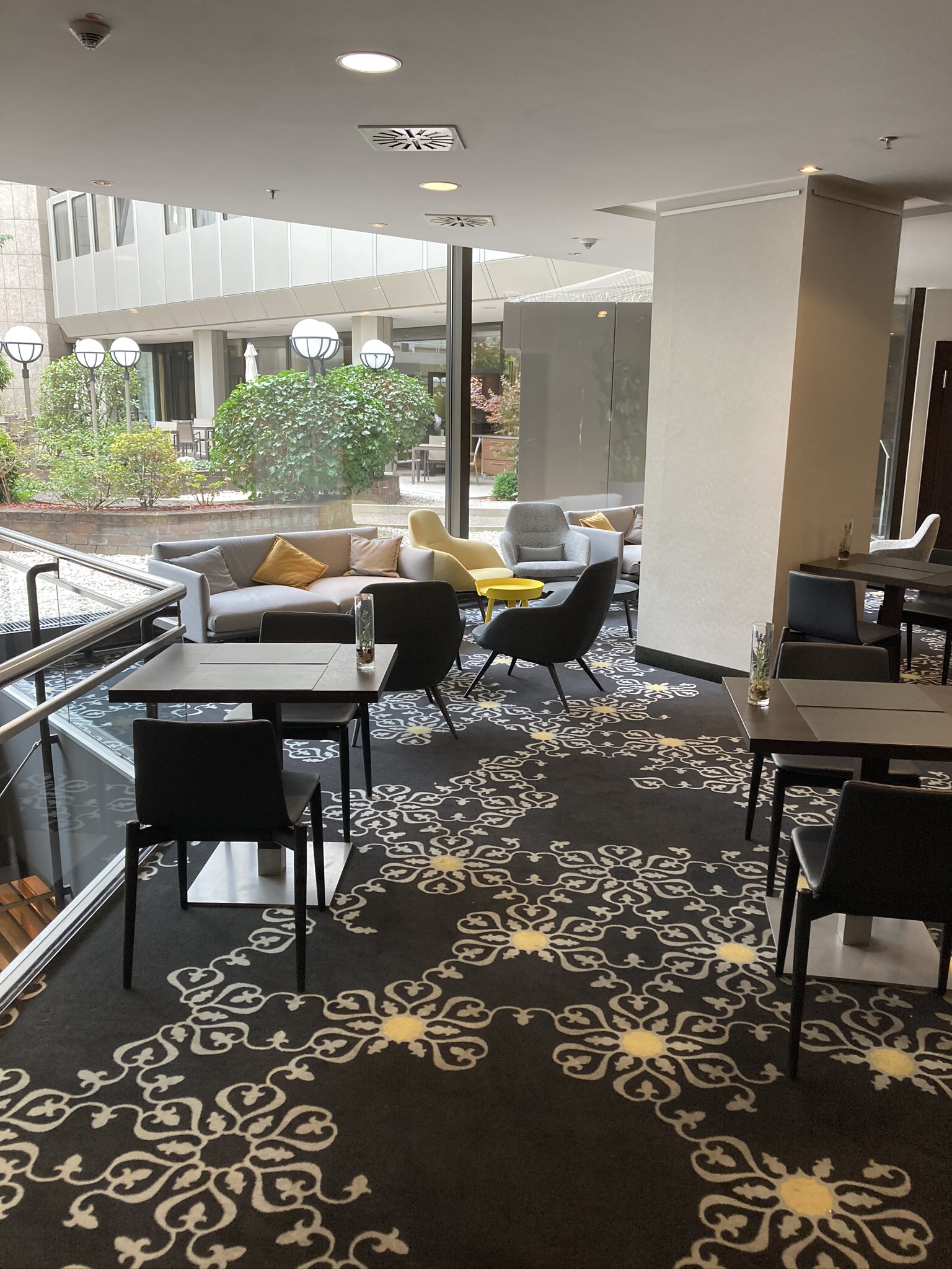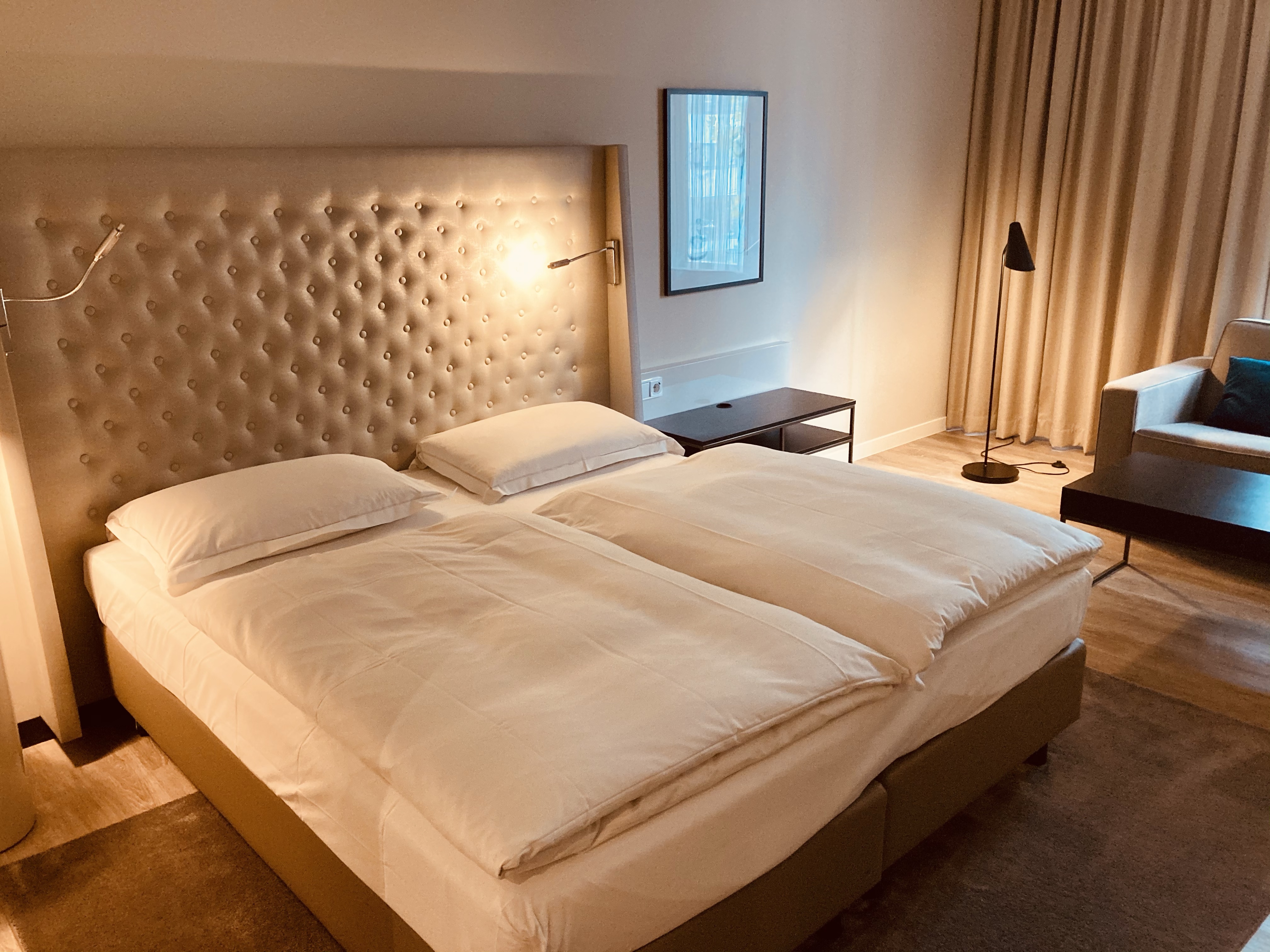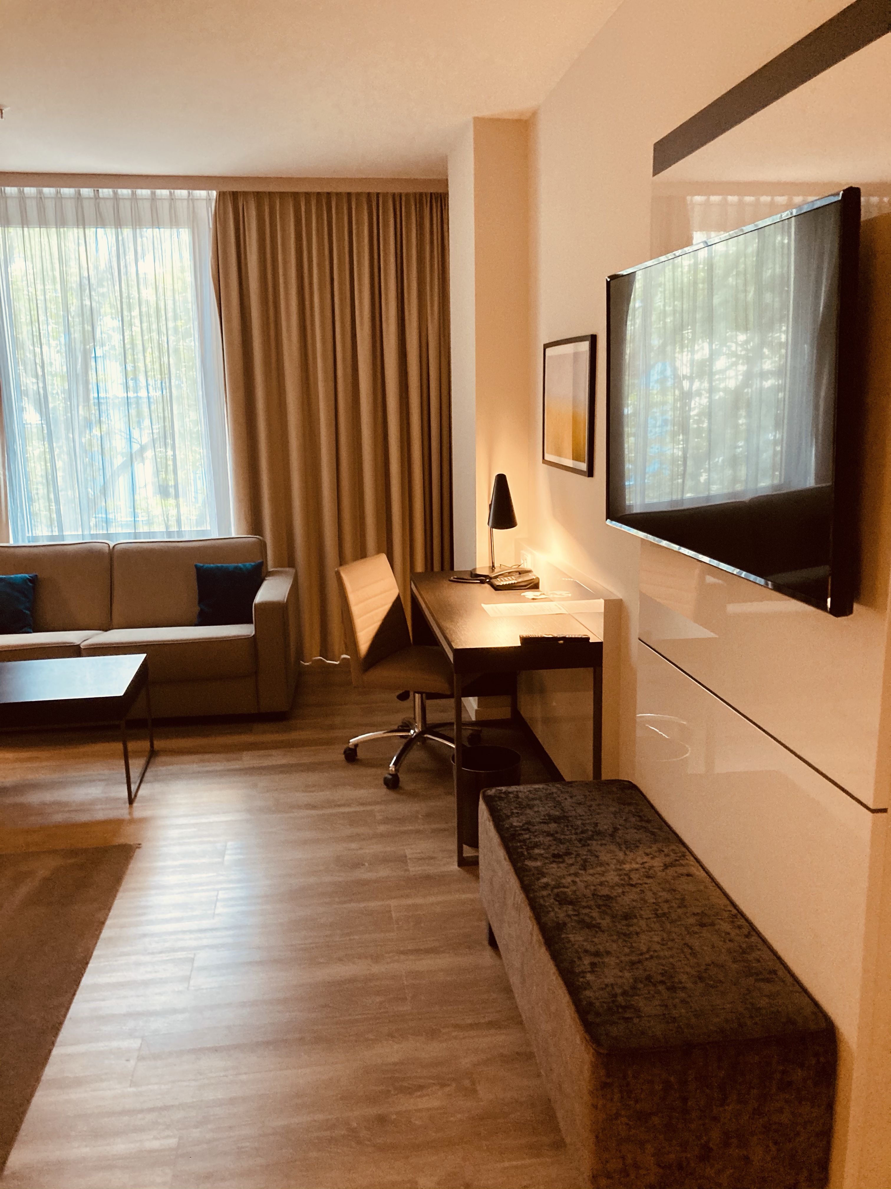 I stayed in a newer “deluxe” room which was spacious but minimal. Due to the Corona pandemics certain amenities were removed. For instance there were no glasses in the bathroom (not even plastic ones) no coffee pads, spoons, sugar or cream even though the coffee maker was still placed in the room. (Should have been removed completely or full stock it). However I have ordered a coffee maker and it was delivered promptly. There were no water bottles provided or any kind of personal touch. Everything seemed to be working on a very minimal recuded level. This made me decide not to try the breakfast at the hotel as I guess it would be minimal too. The price for the breakfast was not reduced, but the hotel overnight rates were very compatible and fair.