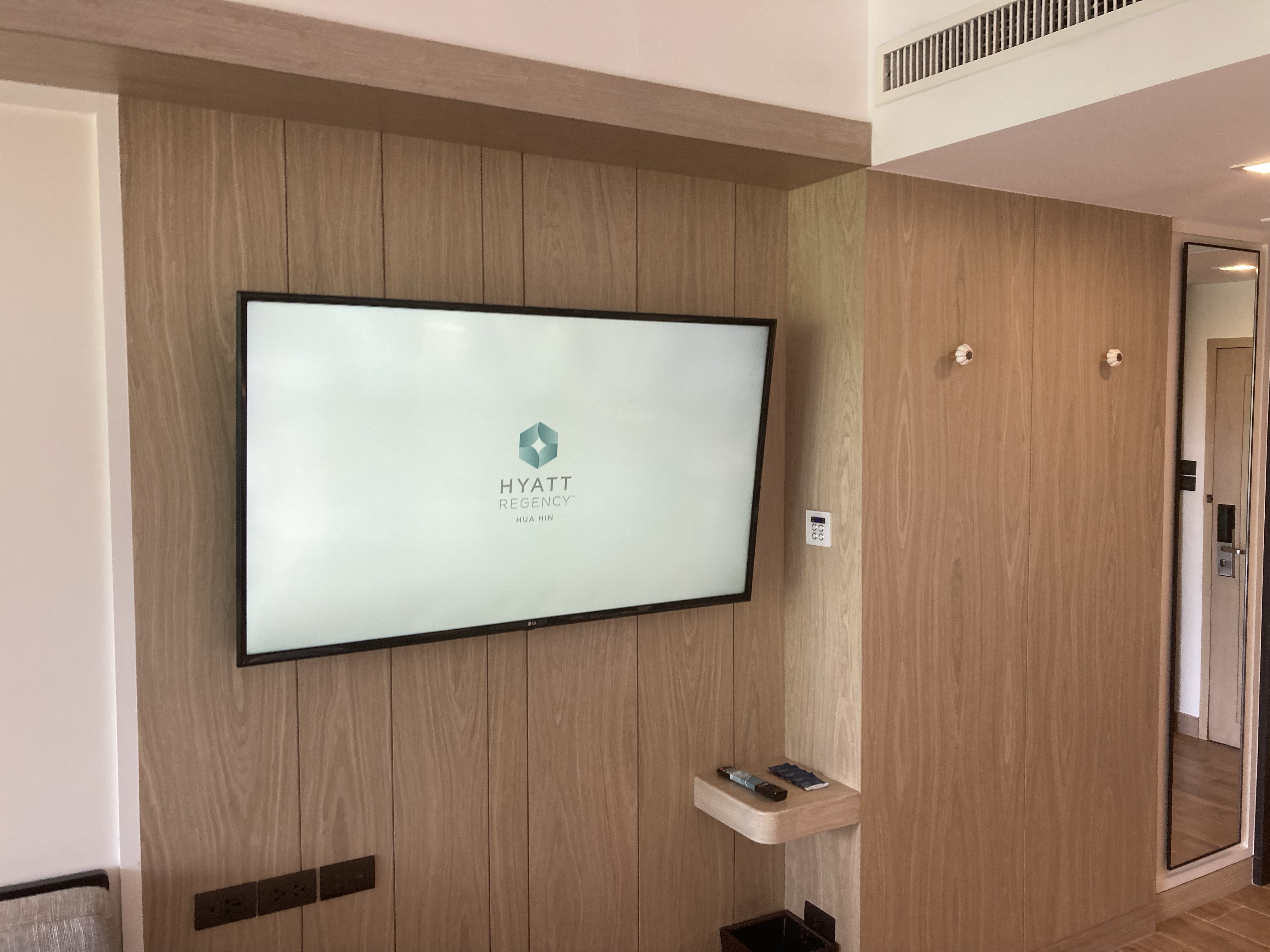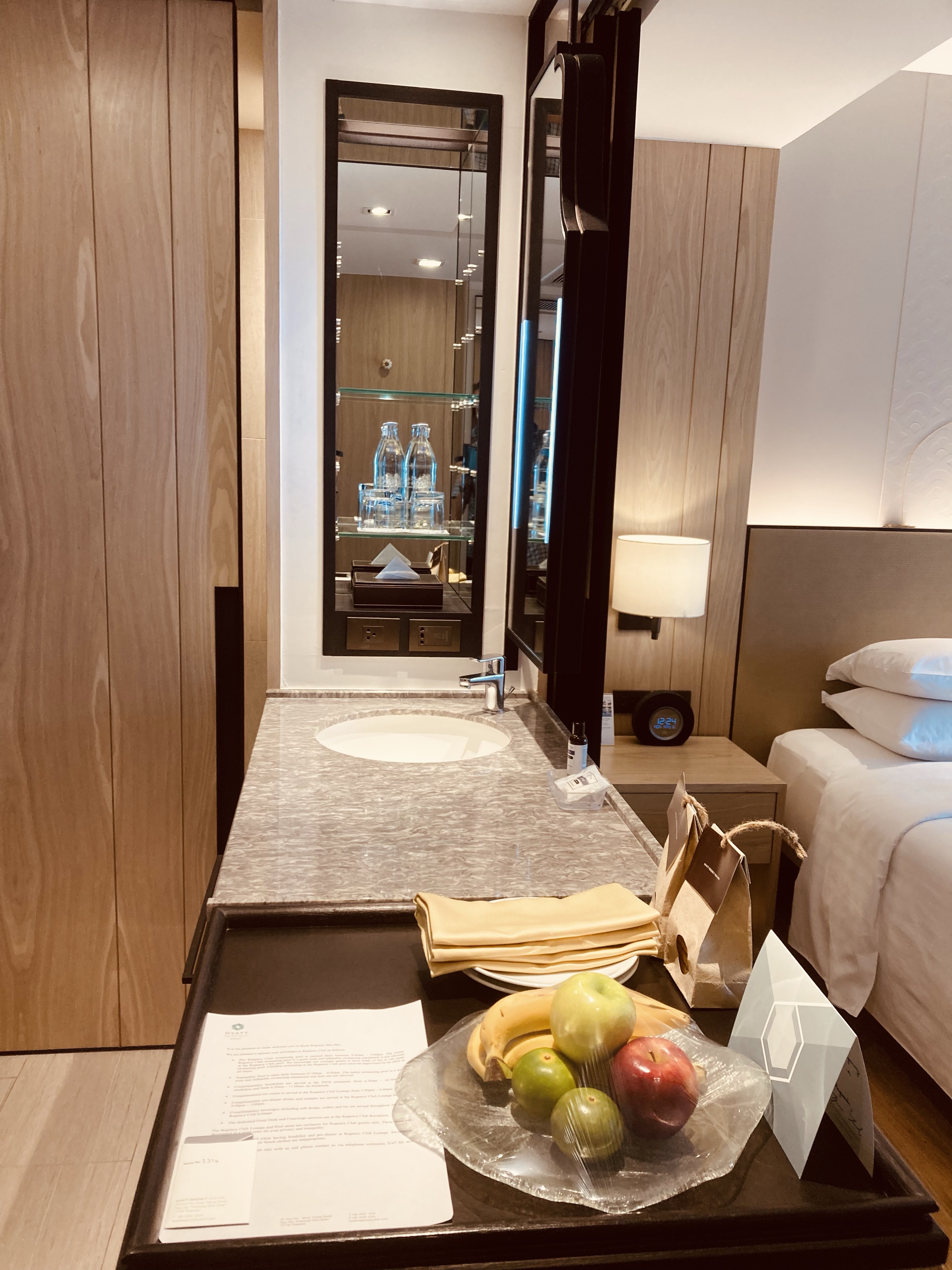 I checked into the Hyatt Regency Hua Hin on a busy day when the hotel ran a full occupancy. Nevertheless, I was greeted cordially and the check-in process was smooth and efficient. By the time the check-in agent escorted me to my room my bags had already been delivered and a fresh fruit platter was ready. The hotel has a strong sustainability commitment such as putting glass bottles for drinking water in the rooms, serving food from local food sources, and participation in a cleaner beach program.